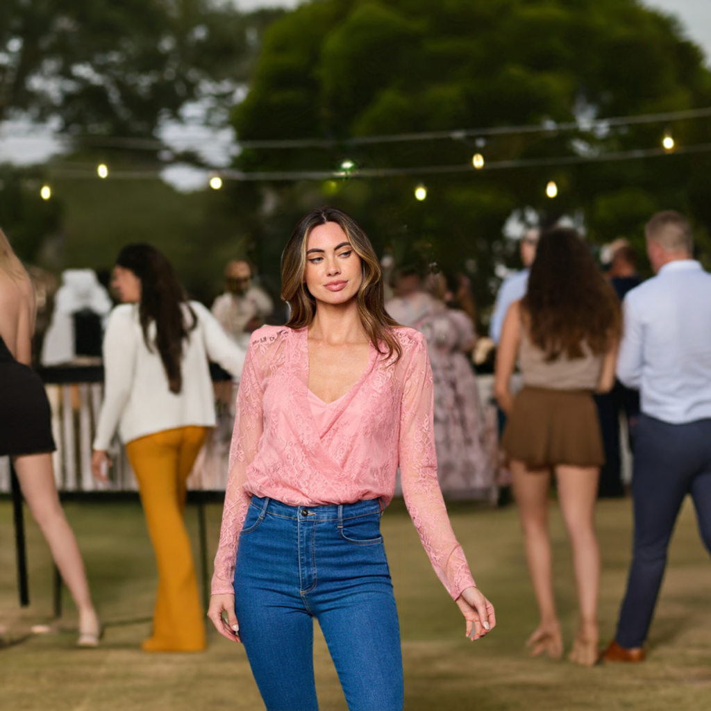 WOMEN'S LONG SLEEVE SURPLICE LACE BODYSUIT