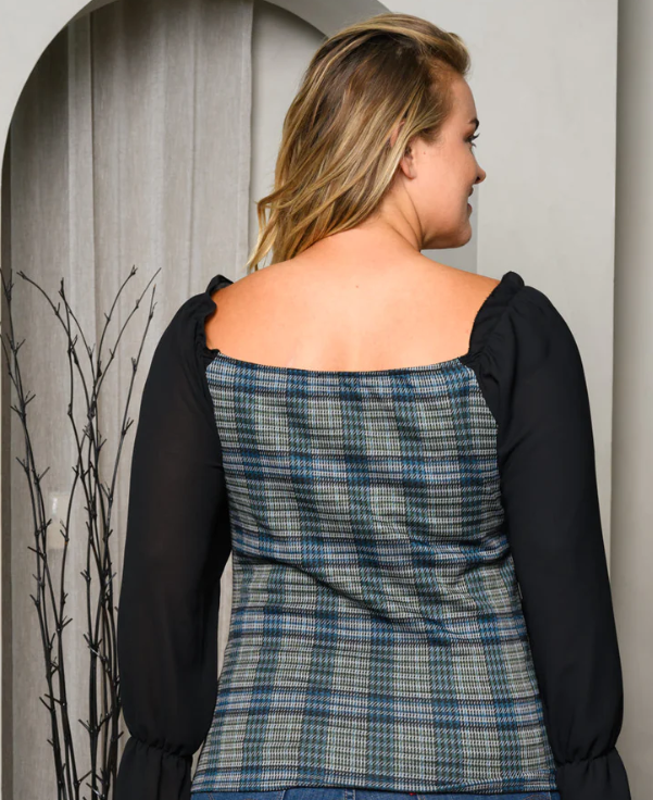 PLUS SIZE LONG SLEEVE BUTTON DETAILED TOP