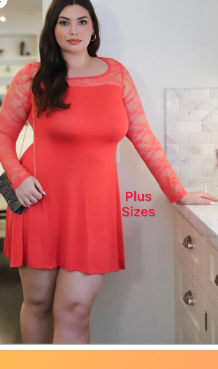 Junior Plus Dark Orange, solid color, lace material details, long sleeves, round neckline, lace back, slim fit, mini length, stretchy, partial sheer, unlined, cute, casual, elegant, tgirlish, classy, chic